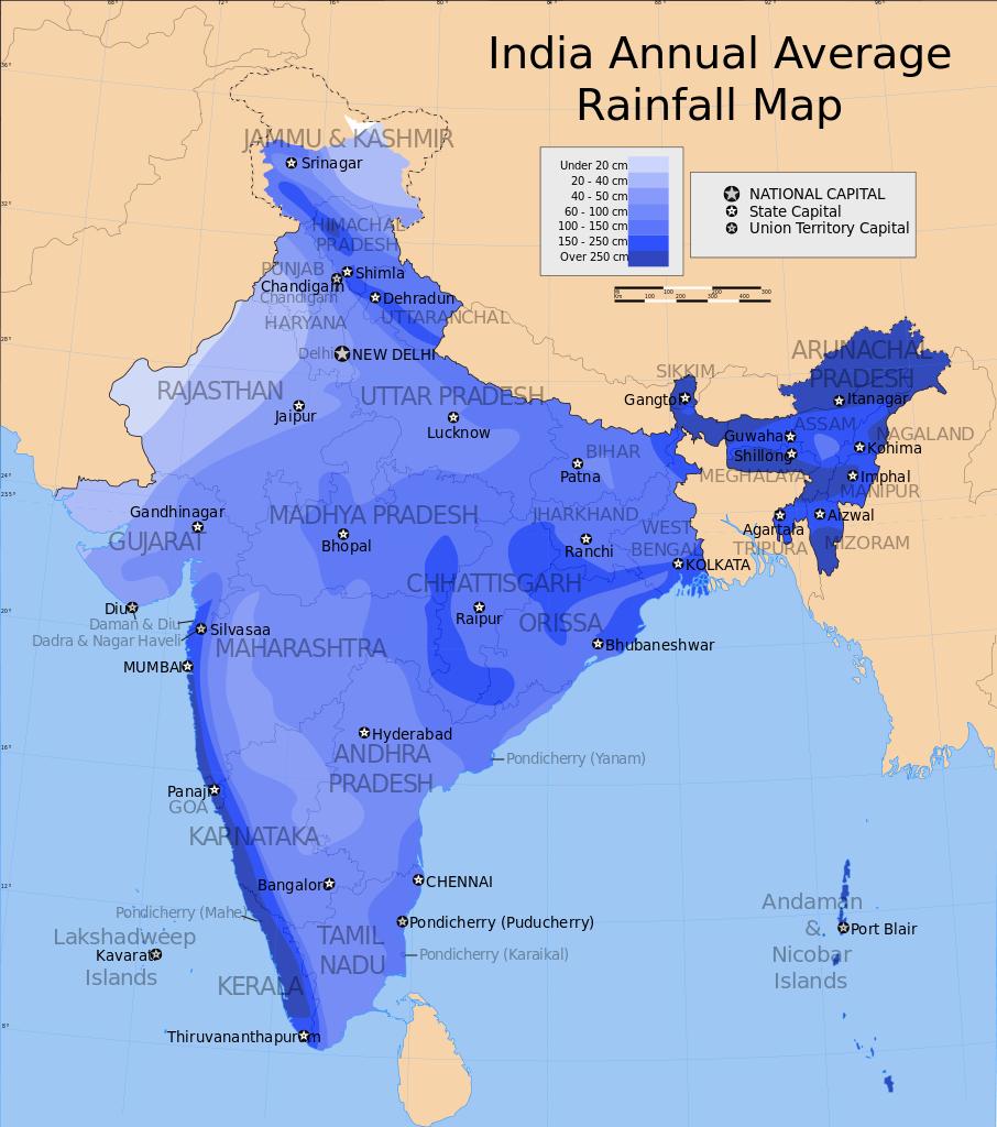 L'inde précipitations carte. Les précipitations carte de l'Inde (Asie du Sud - Asie de l'est) à imprimer. Les précipitations carte de l'Inde (Asie du Sud - Asie de l'est) à télécharger.