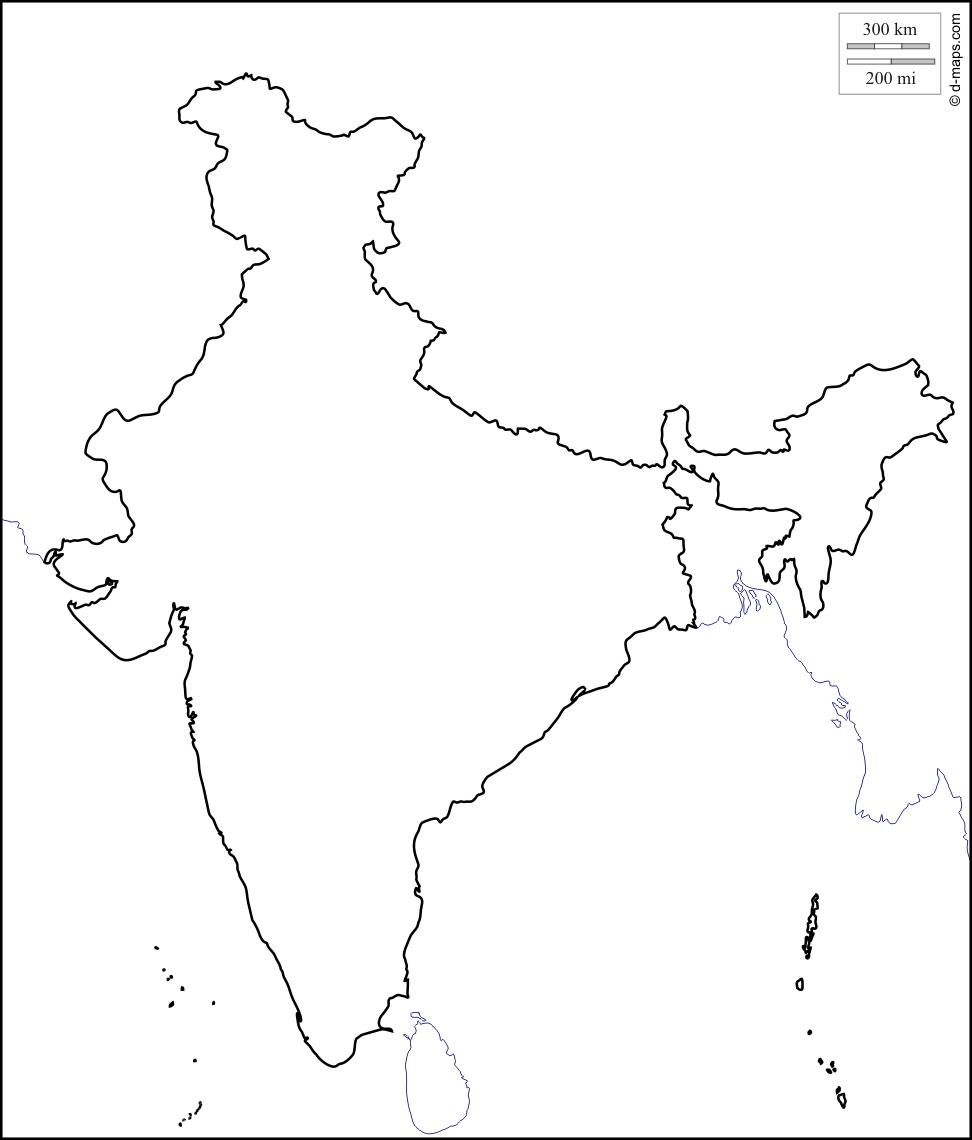 L'inde carte de contour. Carte de l'inde contour (Asie du Sud - Asie de l'est) à imprimer. Carte de l'inde contour (Asie du Sud - Asie de l'est) à télécharger.