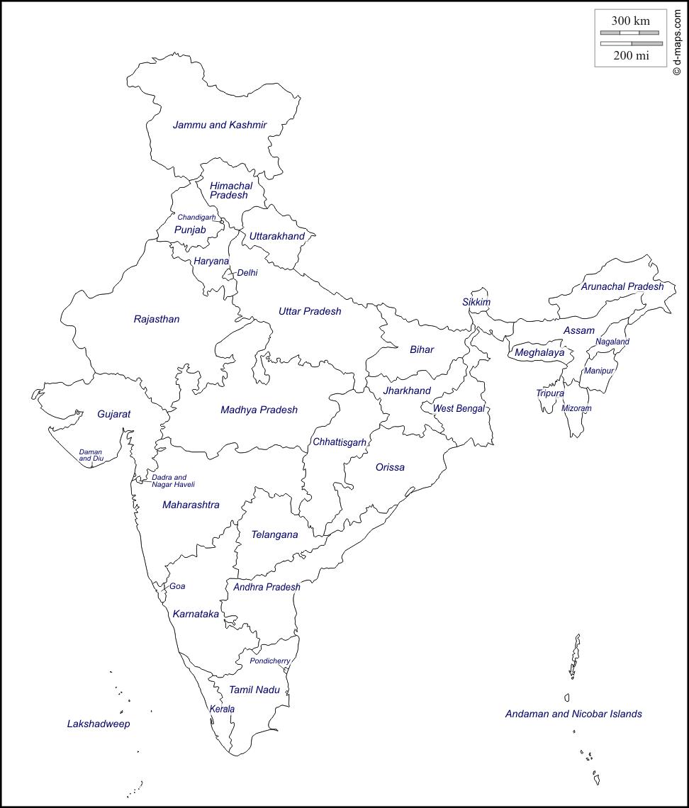 L'inde contour de la carte avec les états. Carte de l'inde contour avec les états (Asie du Sud - Asie de l'est) à imprimer. Carte de l'inde contour avec les états (Asie du Sud - Asie de l'est) à télécharger.
