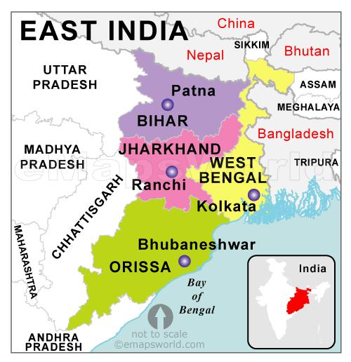 Carte de l'est de l'Inde. Est carte de l'Inde (Asie du Sud - Asie de l'est) à imprimer. Est carte de l'Inde (Asie du Sud - Asie de l'est) à télécharger.