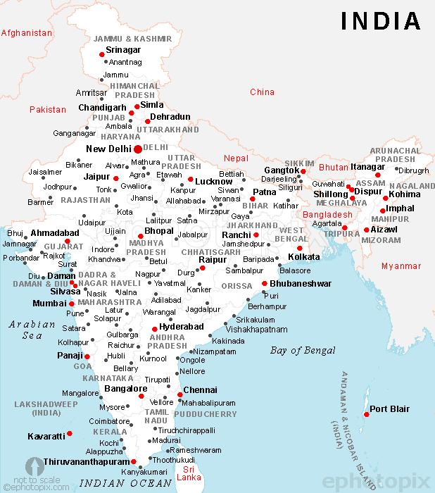 Carte de l'inde avec les villes. L'inde des villes de la carte (Asie du Sud - Asie de l'est) à imprimer. L'inde des villes de la carte (Asie du Sud - Asie de l'est) à télécharger.